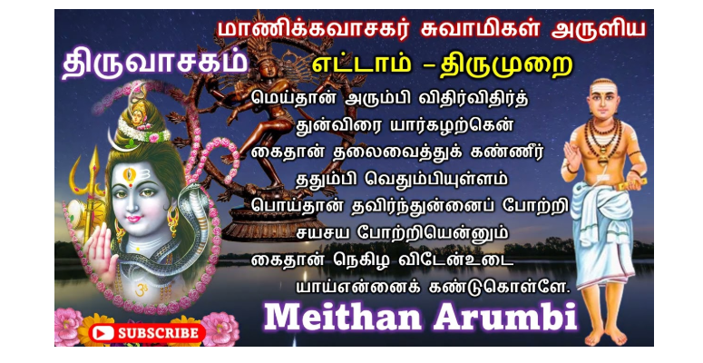 இணைப்பு அரும் பெருமை ஈசன் காண்க! அரியதில் அரிய அரியோன் காண்க! மருவி எப் பொருளும் வளர்ப்போன் காண்க! நூல் உணர்வு உணரா நுண்ணியோன் காண்க! மேலொடு, கீழாய், விரிந்தோன் காண்க!